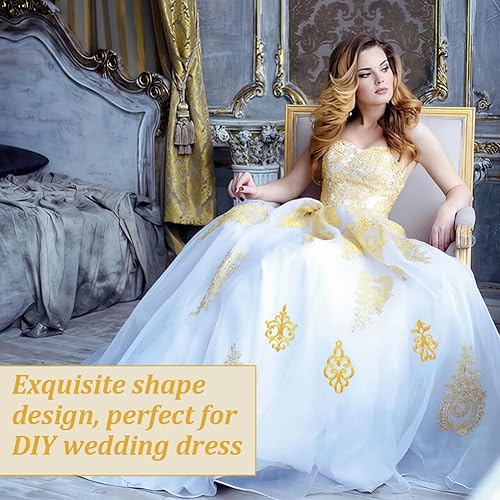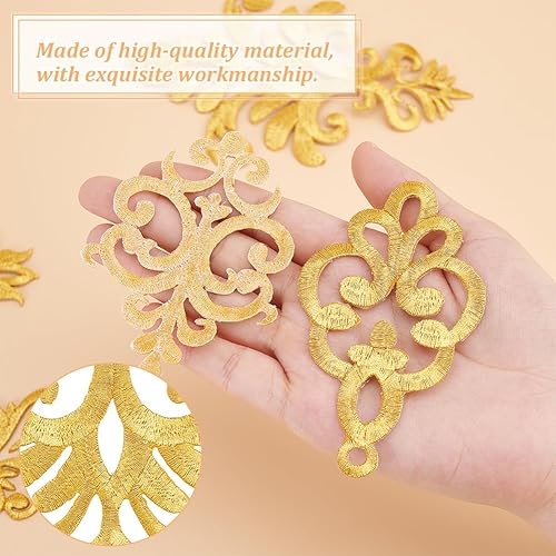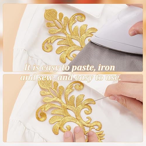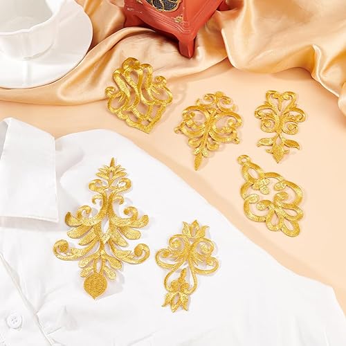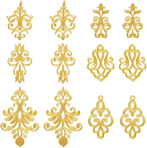 AHANDMAKER Lot de 12 appliques brodées avec fleur dorée, 6 styles en polyester, broderie dorée, patchs dorés de style ethnique avec couronne de feuilles à coudre soi-même