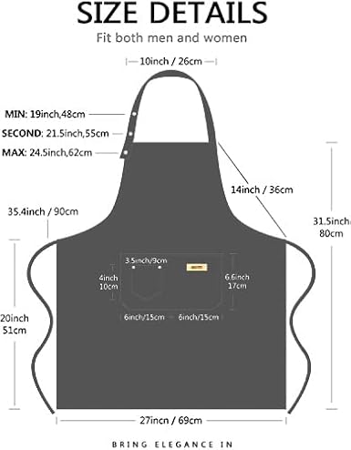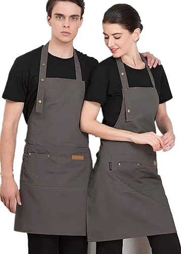 Theuwnee® Tablier, Tablier de Cuisine étanche avec Poches, Tablier de Cuisine réglable, Tablier de Barbecue, Tablier à bavette, Tablier de Cuisine de qualité Professionnelle, 67 x 72 cm