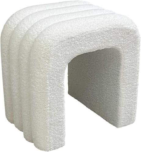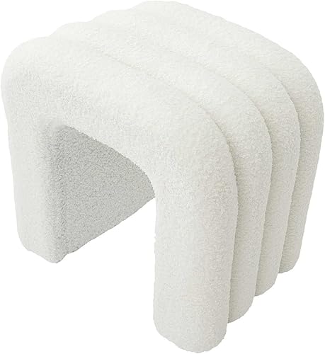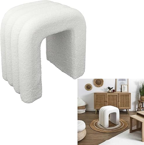 HOME DECO FACTORY, HD0339, Pouf Arc Bouclette Archy, Natural Crush, Mobilier, Assise, Pouf et Coussin de Sol, 41x42x29 cm, Hauteur Assise 42 cm, Blanc