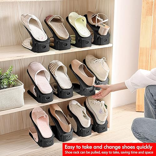 MUSEDAY Lot de 10 rangements à chaussures réglables pour la famille/la maison Noir