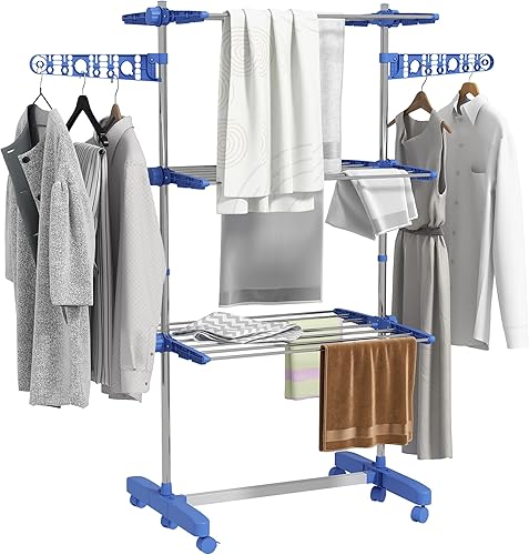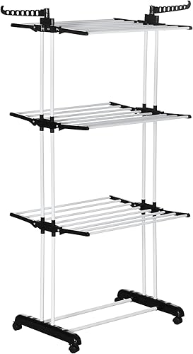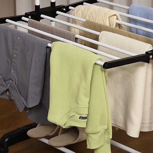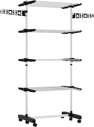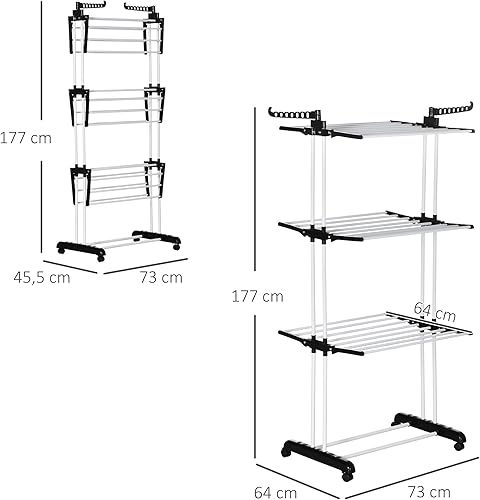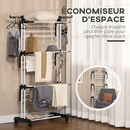 HOMCOM Séchoir à Linge étendoir Pliable Ailes latérales Utilisation intérieure et extérieure 142 x 55 x 172 cm 4 Niveaux Gris