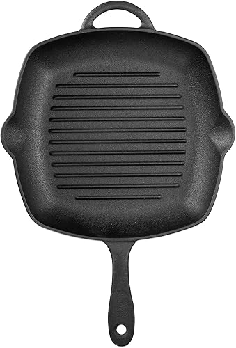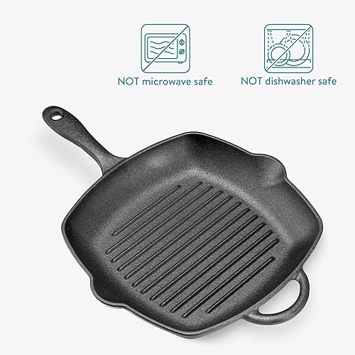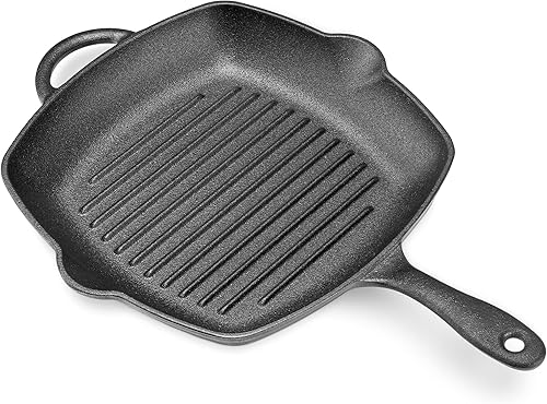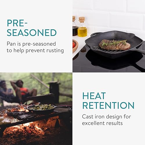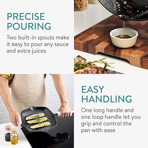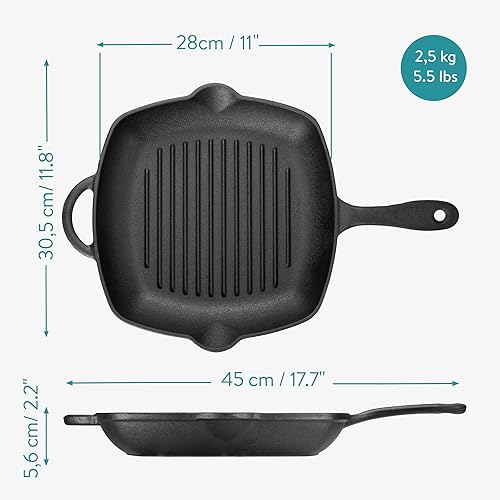 Navaris Poêle Grill en Fonte - Poêle à Griller Carrée 45x30,5x4,7cm Antiadhésif Préassaisonnée - Cuisson Homogène Gaz Induction Four Barbecue