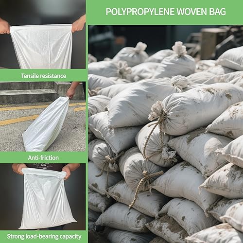 TERRARIDE 10 Sacs à Gravat 55 x 95 cm 55Kg, Sac Jardinage Déchets Verts, Toile Tissée Polypropylène Résistant, Sac de Chantier, Déchets Jardin, Sable, Réutilisable