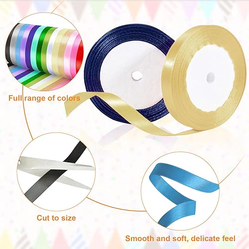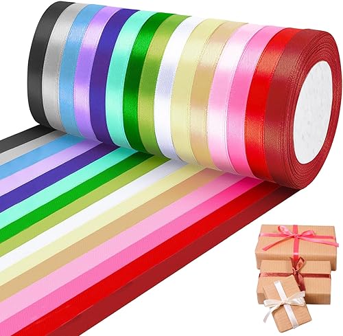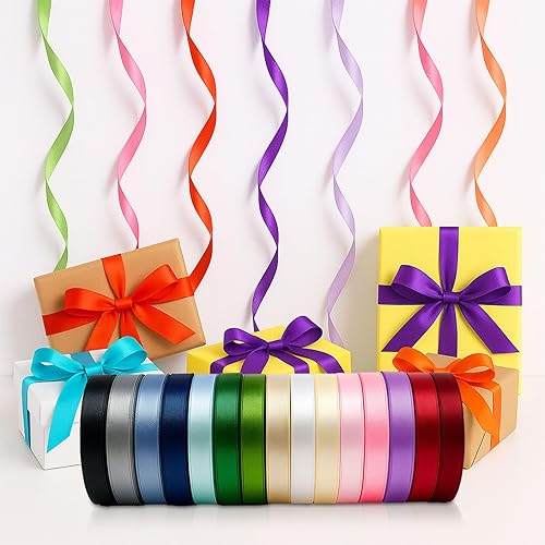 Druuzyl Ruban Satin 15 Couleurs 22m x 10mm - Bande Polyester pour Emballage Cadeaux, Décoration Mariage (Jeu du Bouquet), Couture, Travail Manuel et DIY, Noeuds & Projets Créatifs