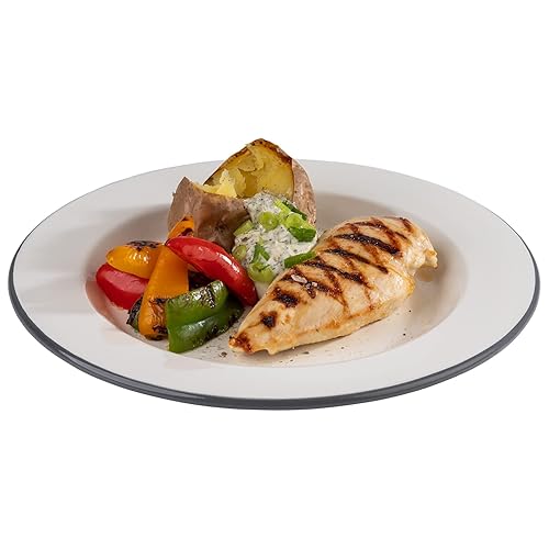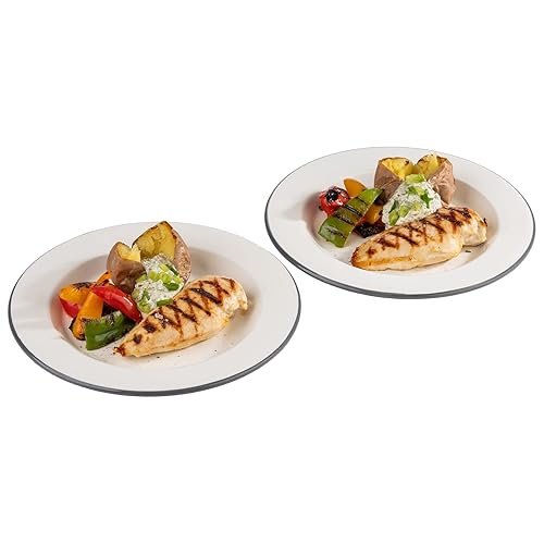 APS 98671 Lot de 2 assiettes plates en émail Ø 26 cm, hauteur : 2 cm, couleur : blanc crème avec bord gris