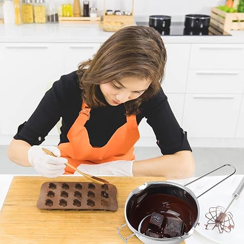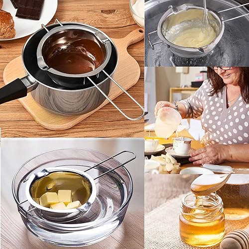 Cozlly Bol de Bain d'eau en Acier Inoxydable 304,Casserole Bain-Marie avec Poignées 2 Becs,ChaudièRes Universelles en Acier Inoxydable,pour Faire Fondre du Beurre,du Chocolat,du Fromage