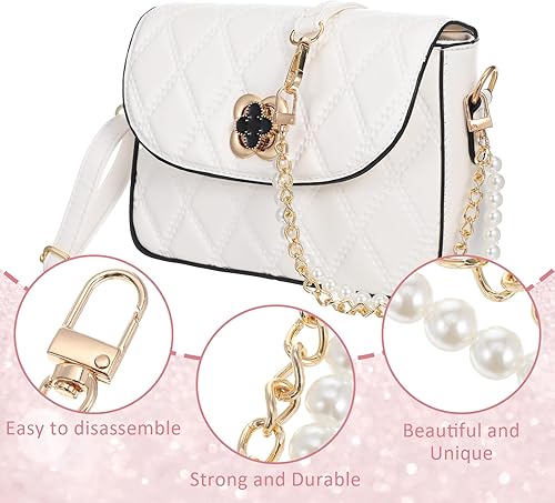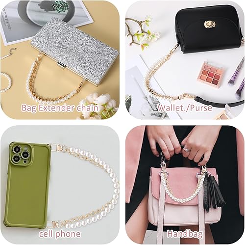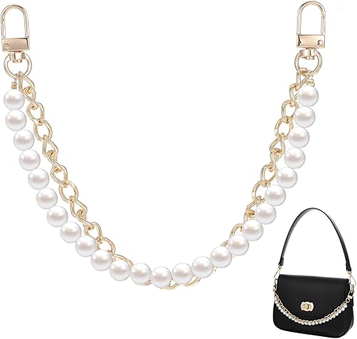 Ouligay Chaîne de sac en perles - Doré - Courte - 30 cm - Chaîne d'extension de poche de rechange - Élégante chaîne de portefeuille dorée - Sac à main court - Sangle de porte-monnaie - Accessoire