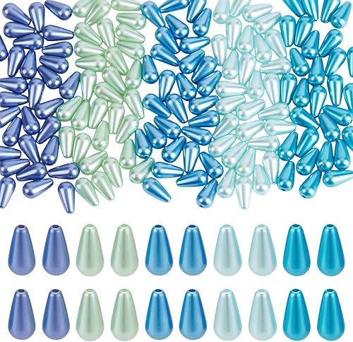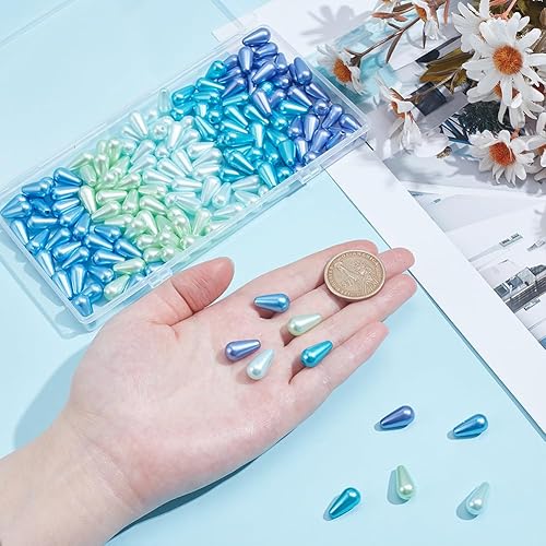 WADORN 150 pièce Perles D'Imitation en Plastique de Larme, 5 couleurs Perles en Plastique ABS Vert et Bleu en Forme de Goutte D'Eau 15x8mm en Vrac pour Bracelet
