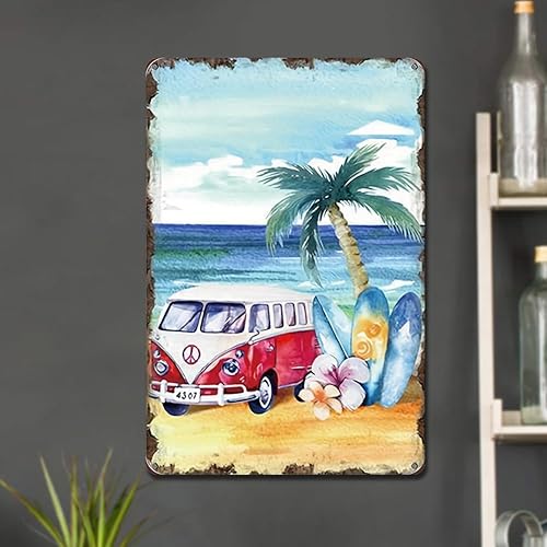 LYEAA Plaque en métal vintage scène de plage 30 x 40 cm, peinture murale pour bars, cafés et décoration d'intérieur