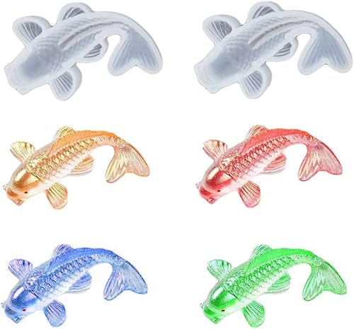 Nifocc Lot de 2 moules en résine époxy pour carpe koï - Moule en silicone pour bricolage - Bonsaï - Porte-clés - Collier - Pendentif