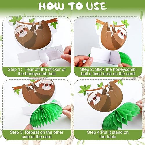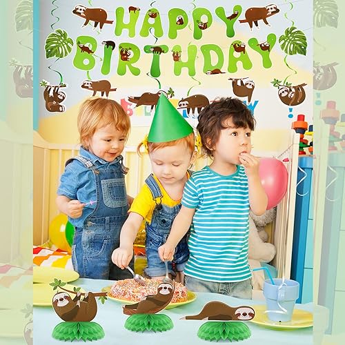 Tinlade Lot de 17 décorations et fournitures de fête en forme de paresseux avec 2 bannières d'anniversaire, 3 centres de table en nid d'abeille, 6 tourbillons suspendus et cartes pour cadeaux