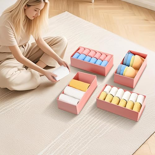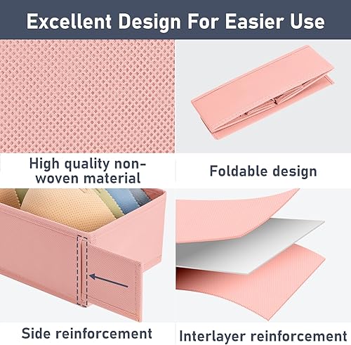 DIMJ Lot de 12 organiseurs de tiroirs - Organiseur de garde-robe - Pliable - Organiseur de tiroir - Tissu pour vêtements de bébé et chaussettes pour enfants - Rose