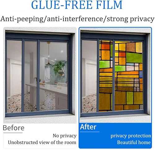 Siunwdiy Film De Fenêtre Givré Décoratif Auto-Adhésif, Église Rétro Sticker Vitrail Sticker De Vitraux, Chambre À Coucher Salon Salle De Confidentialité Film pour Vitres,X,60x120cm