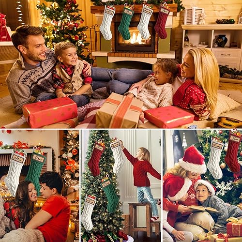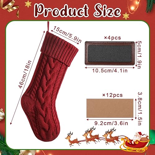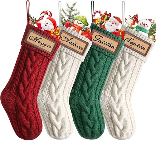 Weldomcor Lot de 4 Chaussette de Noël Personnalisé nom, Tricotés Décorations de Bas de Noël Grand 46 cm Chaussettes Noel de Cheminée à Suspendre Xmas Sac Cadeau Sac de Bonbons (Rouge, Blanc, Vert)