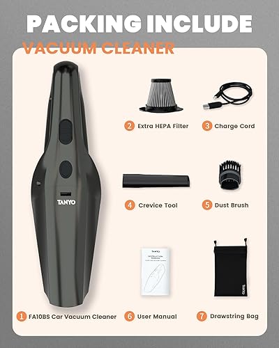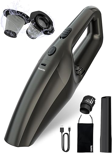 TANYO Aspirateur Voiture Puissant sans Fil, 14000Pa Mini Aspirateur a Main Equipé d'un Moteur amélioré, Aspirateur de Table avec Filtre Lavable HEPA pour Canapé Maison Voiture Bureau Tableau