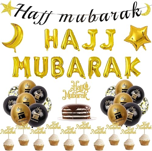 Hajj Mubarak Kit de décoration, ballons en aluminium, décoration de gâteau, décoration de cupcake, ballons (Hajj XL)