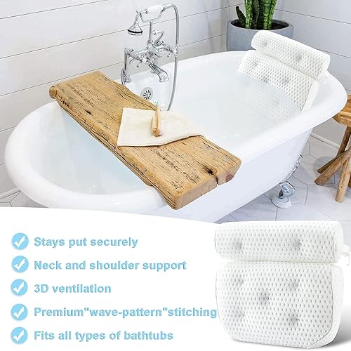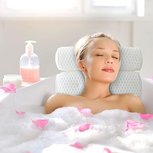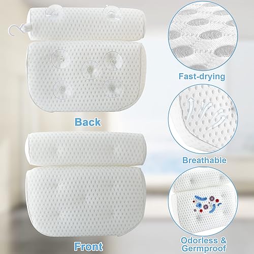 MAISITOO Coussin de Bain Oreiller de Baignoir 4D avec 7 Ventouses Antidérapant Oreiller De Baignoire Air Mesh,Coussin de Spa,Coussin de Nuque,pour Tous Types de Baignoire,Soutien de la tête,épaules