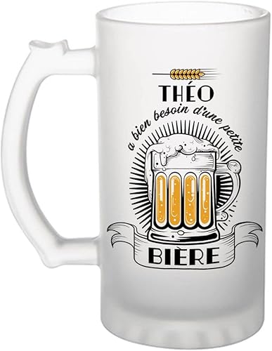 Planetee Chope de bière - Théo a besoin d'une bière - Verre à bière humour idée cadeau fête des mères anniversaire