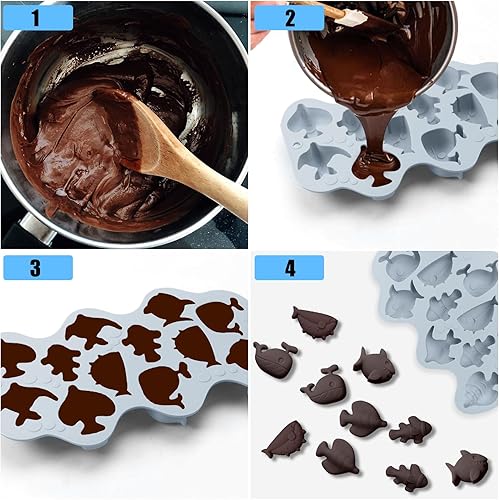 Moule en Silicone Poisson 12 Cavités, Moule à Chocolat Poisson Mer,Moule à Sucettes en Silicone 20x13,5cm, Silicone Enfant Moule à Bonbons Flip résistant à la chaleur, Lavage Machine Moule à Savon