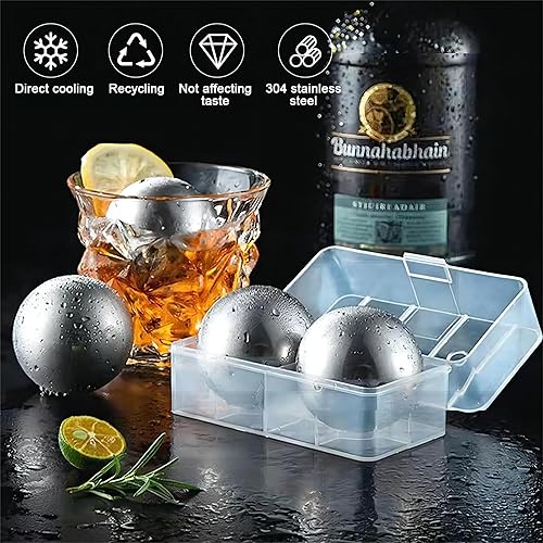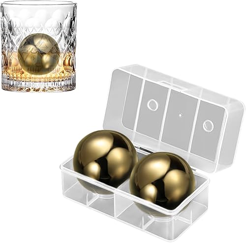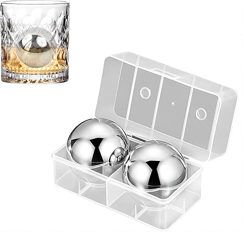 2 Pièces 55mm Sphères de Glace en 304 Acier Inoxydable, Boules de Glaçon Réutilisables, Rond Whisky Ice Stones, Boules Congelés en Métal, Glaçons à Whisky avec Boîte de Rangement, pour Cocktails (A)