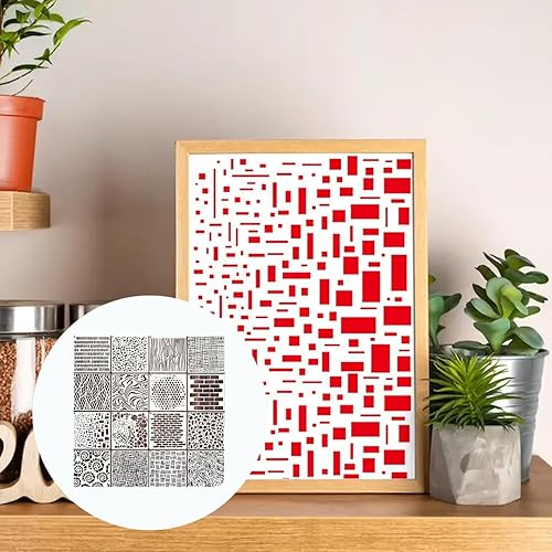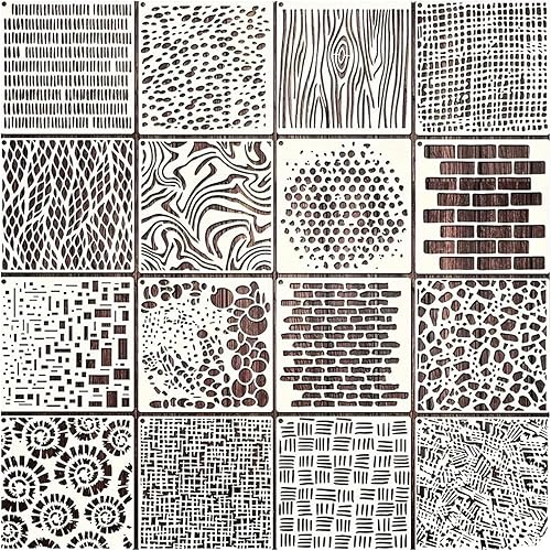 16 pièces Pochoirs Réutilisables pour Peinture Artistique,Techniques Mixtes,Texture et Motifs Géométriques,Toile, Mur, Sol, Meubles, Cartes et Scrapbooking,Idéal Bricolage Aérographe