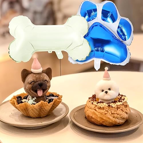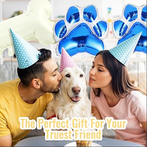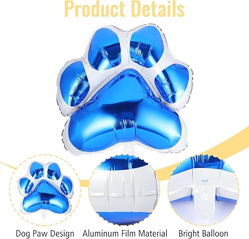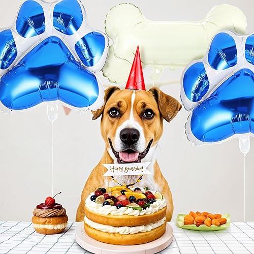Lot de 5 ballons en aluminium à motif empreintes de pattes de chien (71,1 x 66 cm) - Décoration d'anniversaire pour filles et garçons - Bleu et blanc