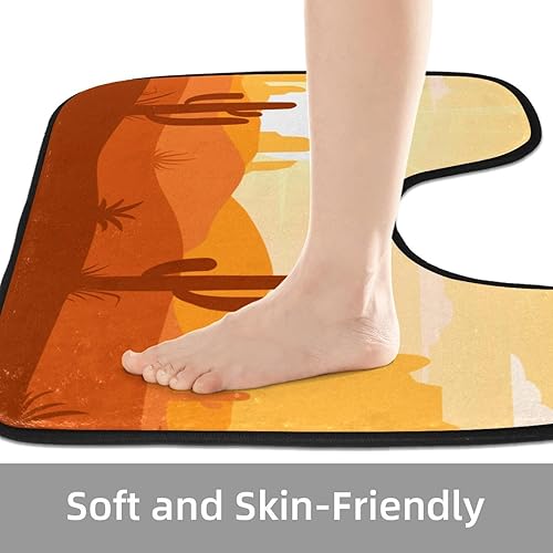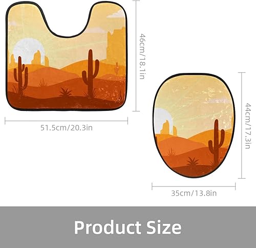 VAPOKF Lot de 2 tapis contour WC en forme de U et housse pour abattant de WC, tapis de salle de bain en flanelle douce et antidérapante, housse pour abattant de toilettes, motif cactus, lever du