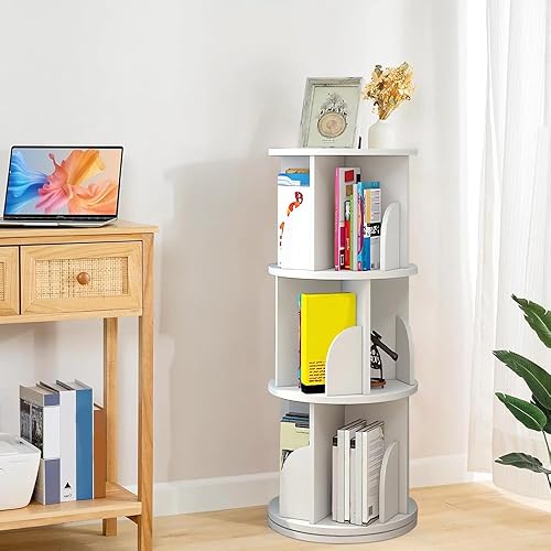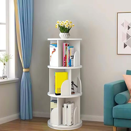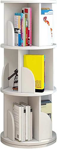 Bibliothèque pour Enfants,Étagère Pivotante à 3 Niveaux pour Livres et Jouets, Étagère à Livres pour Enfants, Étagère de Rangement Autoportante, pour Chambre d'enfants,Ronde (Blanc-40*40*97cm)
