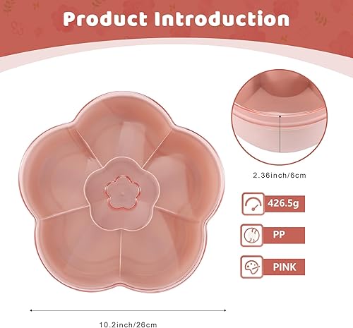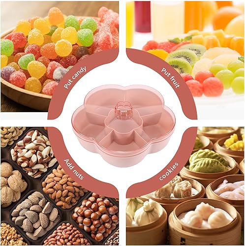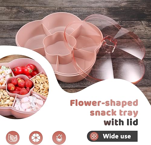 Aboiledy plateau aperitif, snack box plateau de collations, boîte à collation Boîte de Rangement en Forme de Fleurs avec 6 Compartiments Distincts et Couvercle, pour les Noix, Bonbons, Fruits Secs