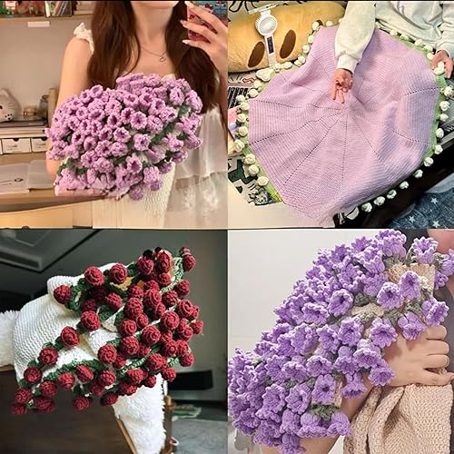 Couverture de canapé tricotée en forme de rose, bouquet de fleurs crocheté, fait à la main, cadeaux créatifs pour mères et épouses (rose)