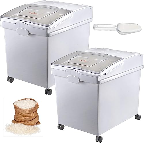 VEVOR Conteneur de Riz à roulettes 3PCS Bac à Riz avec Couvercle Coulissant 25L*3 Boîtes de Stockage de Rangement de Céréales à Farine à Ingrédients en Plastique pour la Conservation Alimentaire