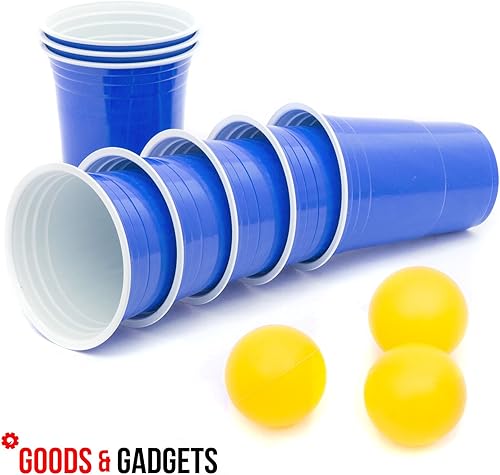 GOODS+GADGETS Gobelets de fête; Gobelets à Boisson réutilisables Gobelets Rouges Gobelets en Plastique de 16 oz Gobelets en Plastique - L'ensemble Comprend 3 balles de ping-Pong (50 pièces, Bleu)