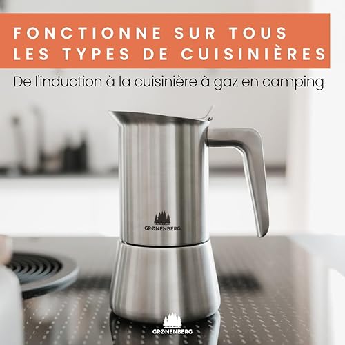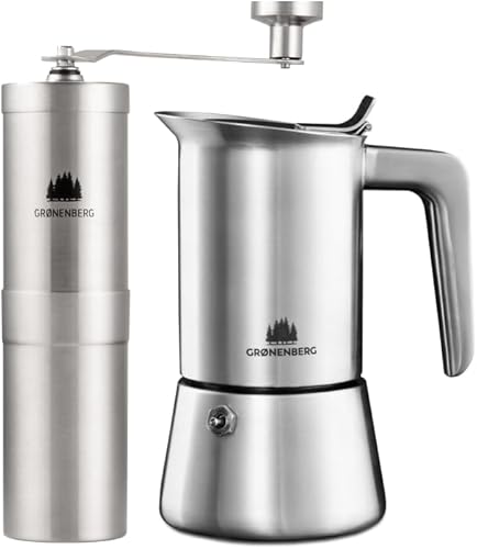 Groenenberg Cafetiere Italienne Induction (4 Tasses) + Moulin à café manuel | Set de remise café avec Cafetiere expresso (en INOX) & Coffee grinder