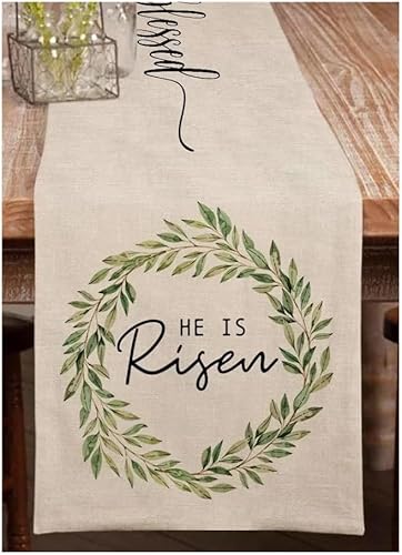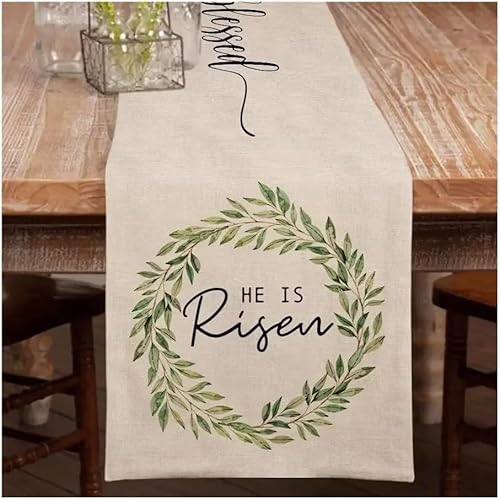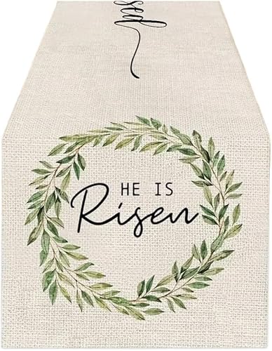 MOVDARL Lot de 2 chemins de table en lin de Pâques avec inscription « He Is Risen » - Décoration de mariage - Printemps, salle à manger, fête sur le thème de la ferme (275 x 33