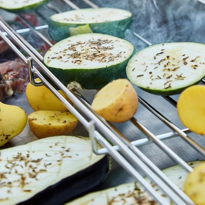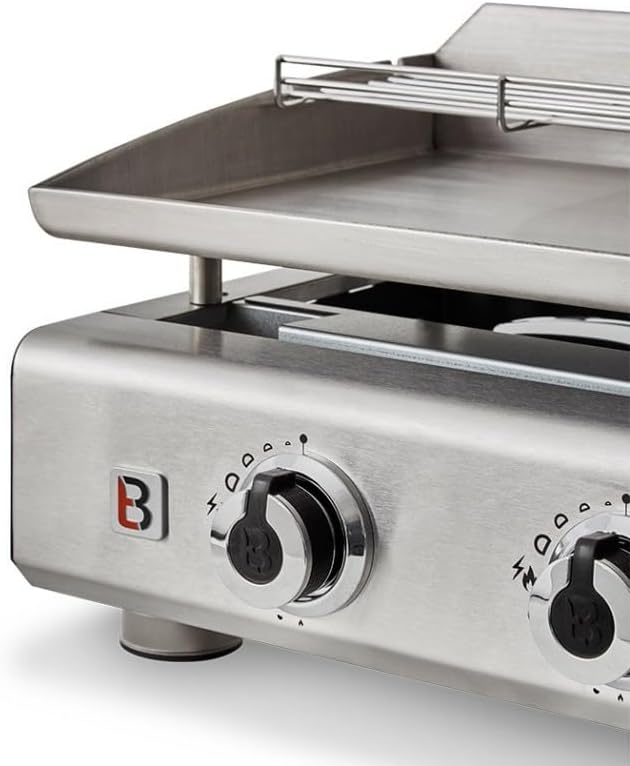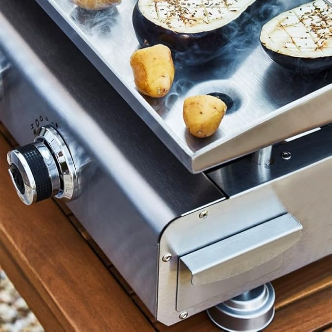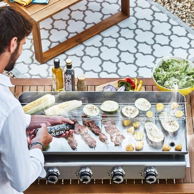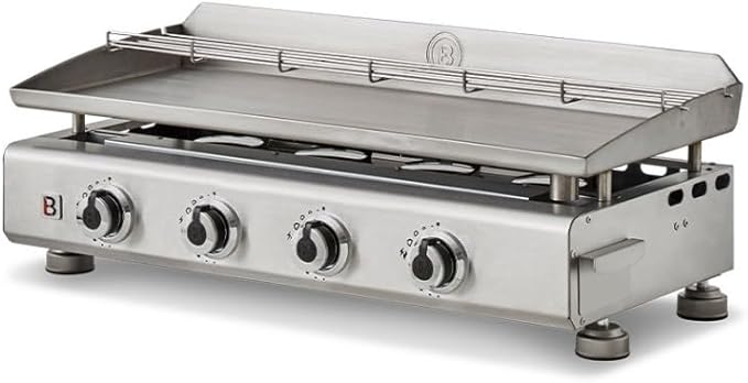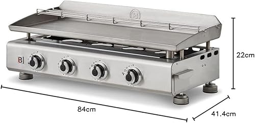 BRASERO - Plancha Silvia II G Inox 4 Feux - Plaque Inox - 4 brûleurs - Surface de cuisson 84 x 34 cm - Puissance de 10 kW - Grille de réchauffement - Tiroir graisse - Jusqu'à 12 convives
