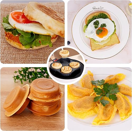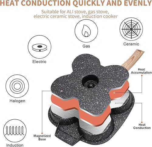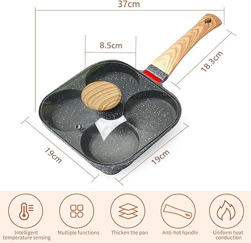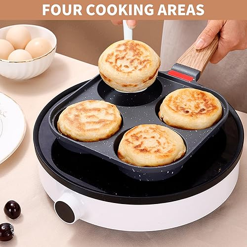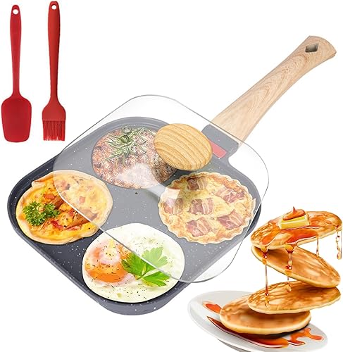 Bocguy Poêle à 4 Emplacements, Poêle à Pancakes avec Couvercle Poêle à Omelette Antiadhésive en Aluminium pour Petit-déjeuner Oeuf Au Plat