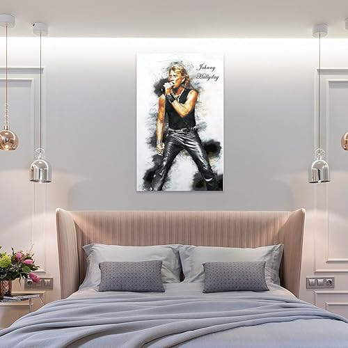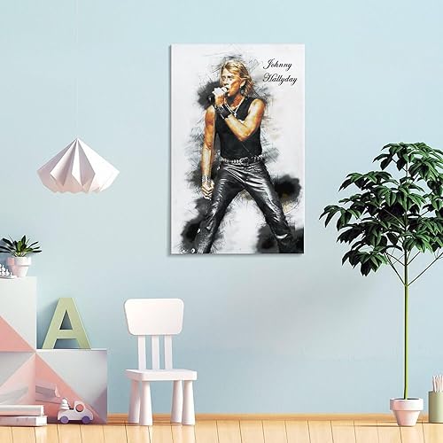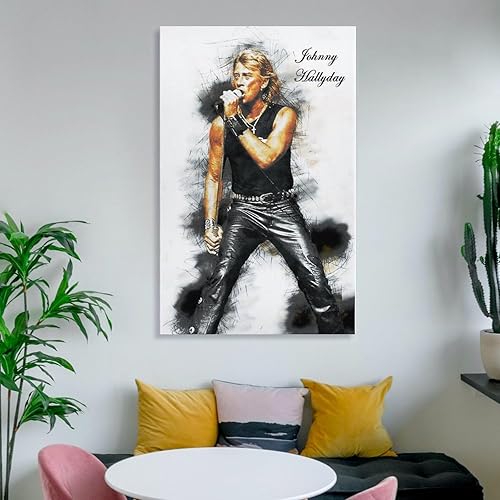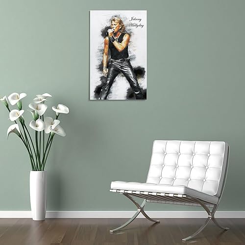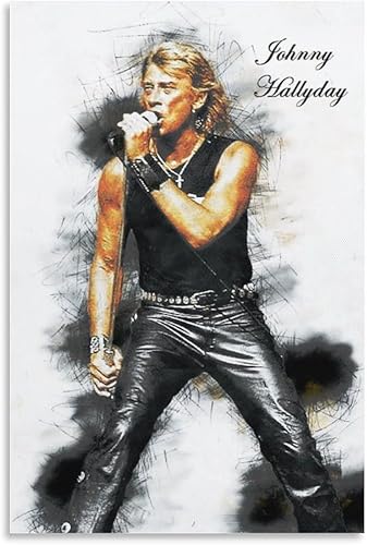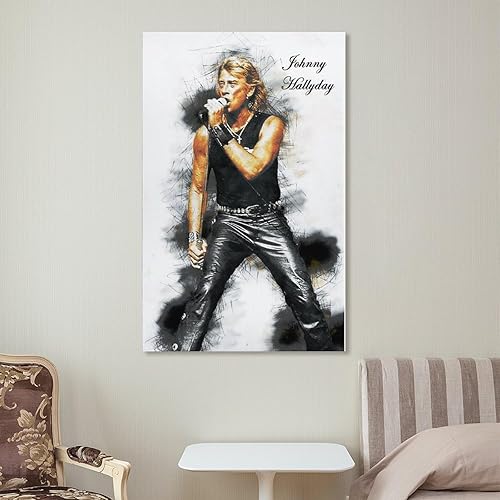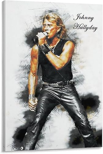 Poster sur toile compatible avec Johnny Hallyday Singer Tribute Impression haute définition pour la maison ou le bureau Décoration murale 50 x 75 cm 50 x 75 cm
