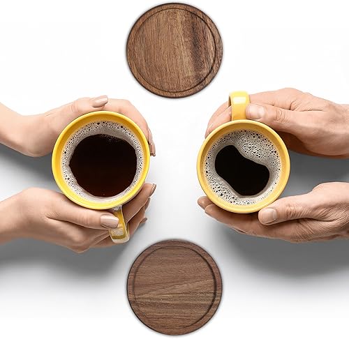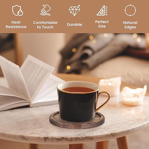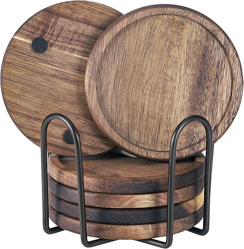 Kssvzz Dessous de Verre Bois, Lot de 6 sous Verre en Bois avec Support, Antidérapants sous Bock pour Boissons, Bars, Tasses