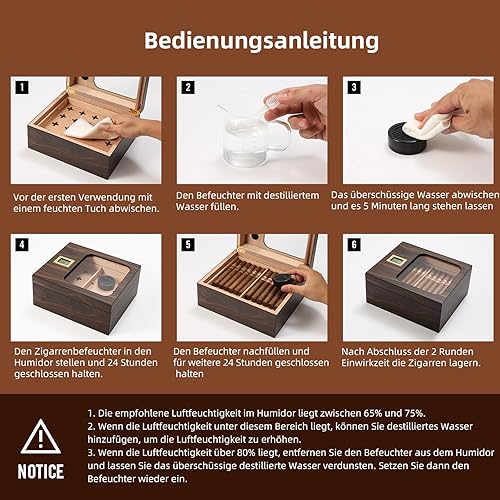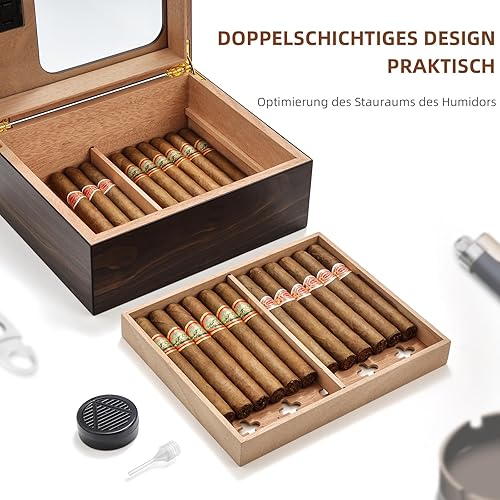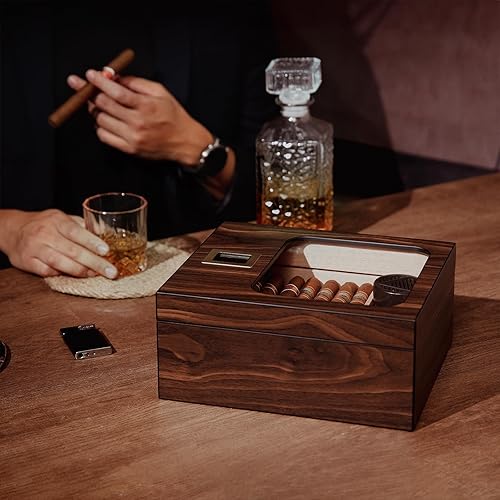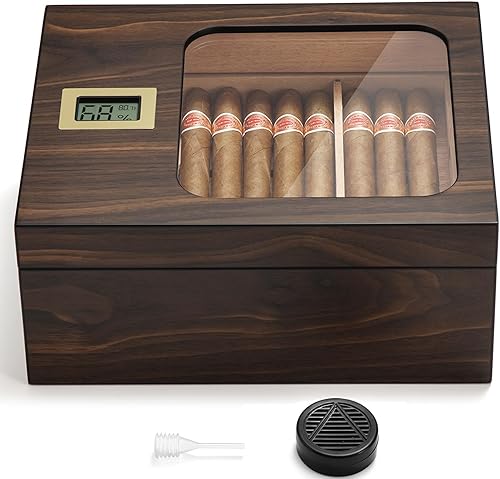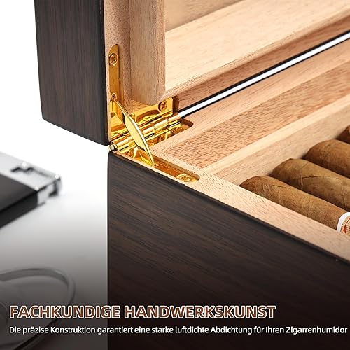 LEACHOI Cave à cigares faite à la main, armoire à cigares, humidificateur et noyaux de cèdre, séparateur et hygromètre numérique, cadeaux pour hommes
