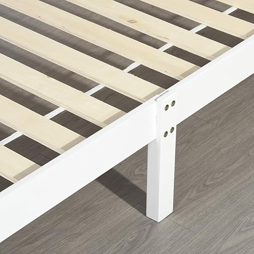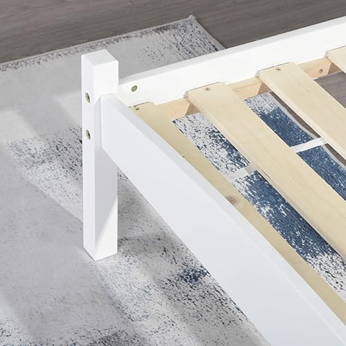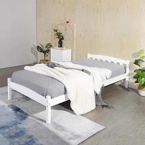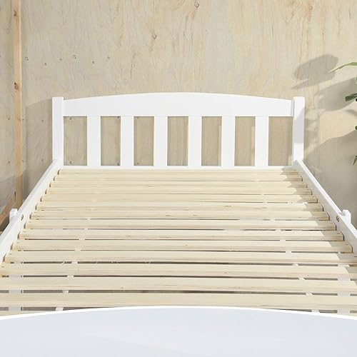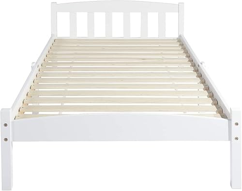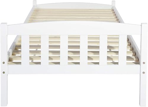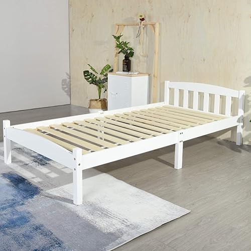 LiePu Lit Simple en Bois Massif avec Sommier en Lattes, Lit 1 Place pour Enfants et Adultes, 90 x 190 cm, Blanc