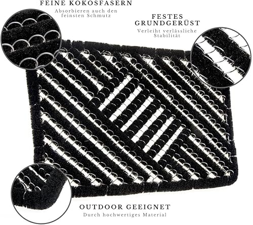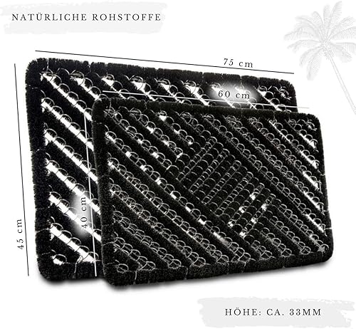 Hanse Home Grid Brushes Paillasson Coco et Caoutchouc 45 x 75 cm – Paillasson antidérapant pour l'intérieur et l'extérieur avec brosses en Coco – Résistant aux intempéries – Naturel