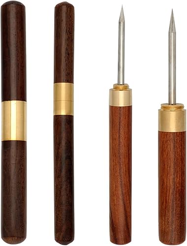 Haiki Trou Cuir Punching Awl Manche en Bois Poinçonnage en Cuir AWL avec Couvercle pour Le Poinçonnage en Cuir