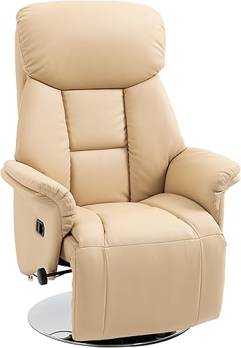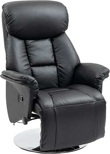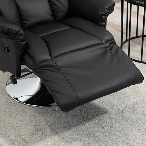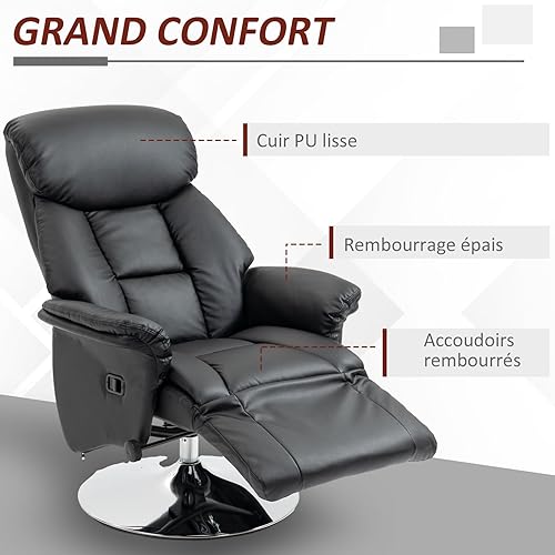 HOMCOM Fauteuil de Relaxation Fauteuil Relax de Salon inclinable pivotant Repose-Pied réglable accoudoirs, Chaise TV en Similicuir synthétique, jusqu'à 150 kg, pour Salon, Chambre, Home cinéma, Noir