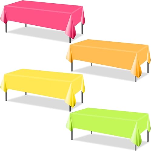 XIHIRCD 4pcs Nappe Fluo en Plastique, 137x274cm à Usage Unique Nappe Colorée Vert Rose Orange Jaune Nappe Rectangulaire Décorations de Fête pour Anniversaire Fête Phosphorescente