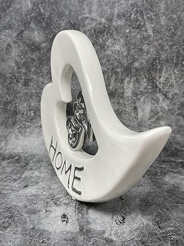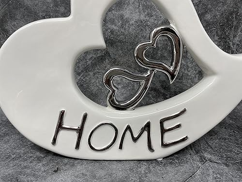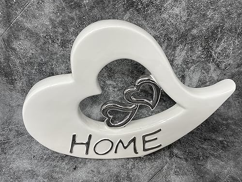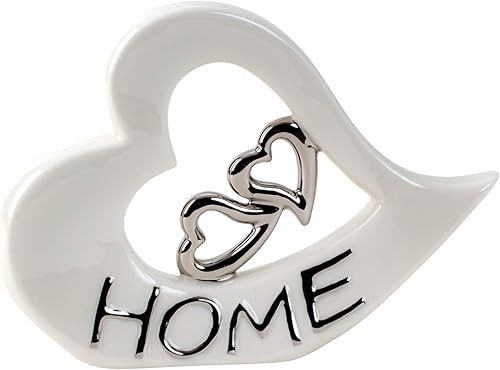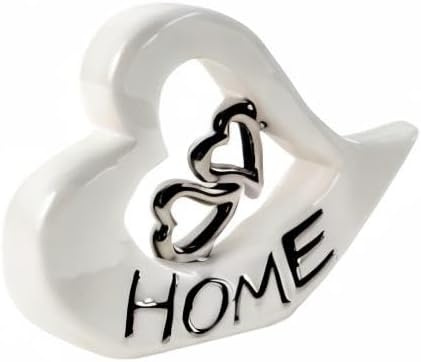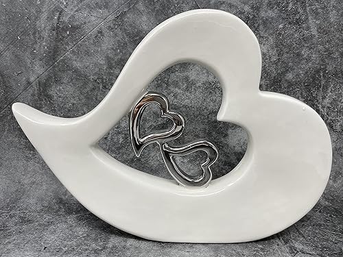 Lifestyle & More Sculpture Moderne Décor Cœur en céramique Blanc et Argent 22x16 cm