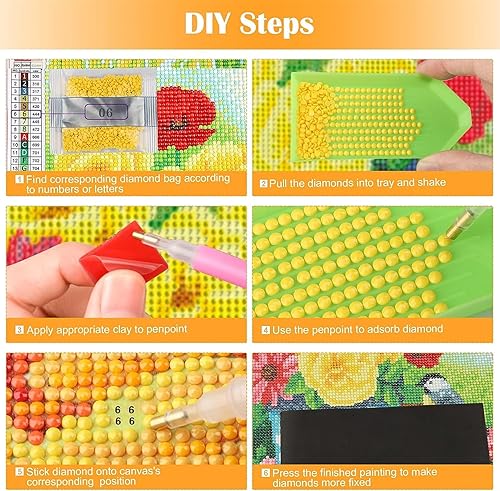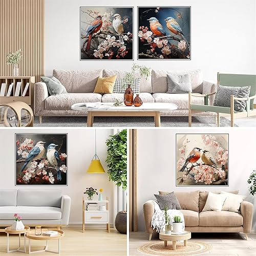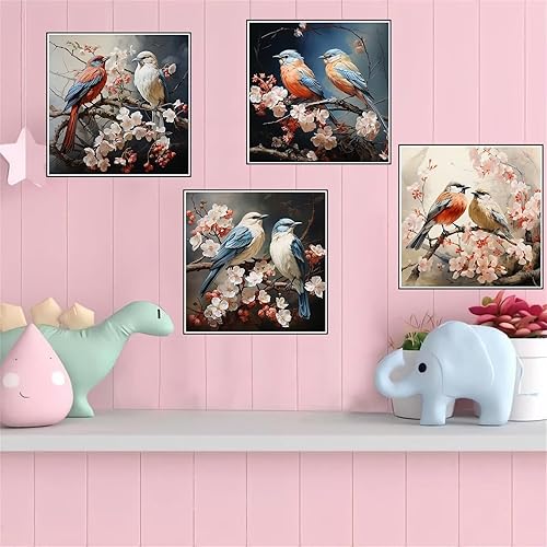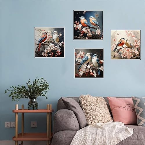 Lot de 4 5D Diamond Painting Oiseau fleuri Peinture Diamant Broderie Diamant Kit Complet Rond Point de Croix Cristal Painting DIY Diamant Painting Adultes pour Murale Maison Décor 20x20cm T-9411