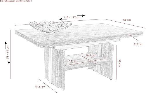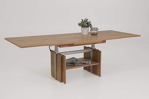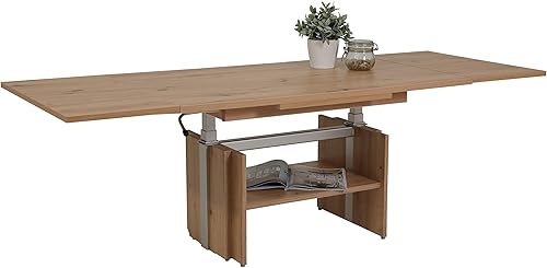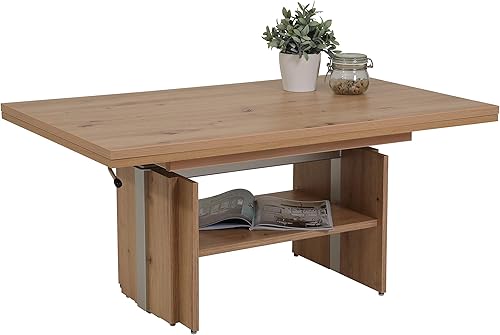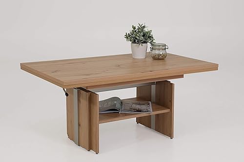Hela Tische, Table Basse Jerome, matériau dérivé du Bois avec revêtement mélaminé, chêne Artisan, Extensible de 110 à 177 cm, Hauteur réglable avec élévateur de 53 à 69 cm