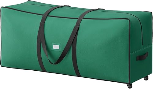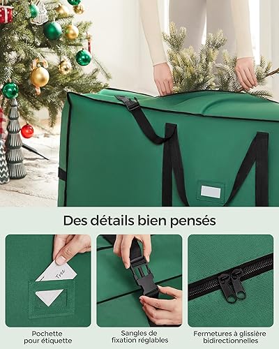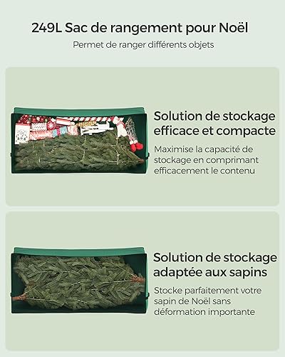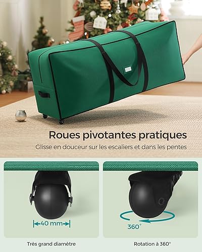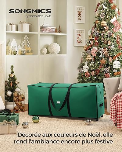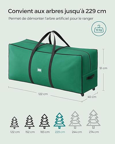 SONGMICS Sac de Rangement avec Roues Diamètre de 40 mm, Sac de Transport, Jusqu’à 229 cm, pour Sapin de Noël Démonté, Poignées Réglables en Longueur, Tissu Oxford 600D, Vert Forêt RXS004C03