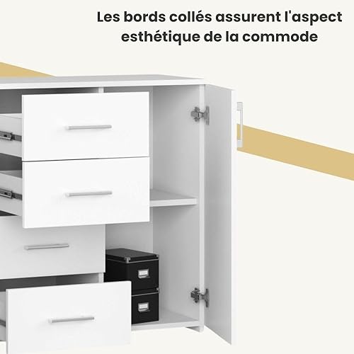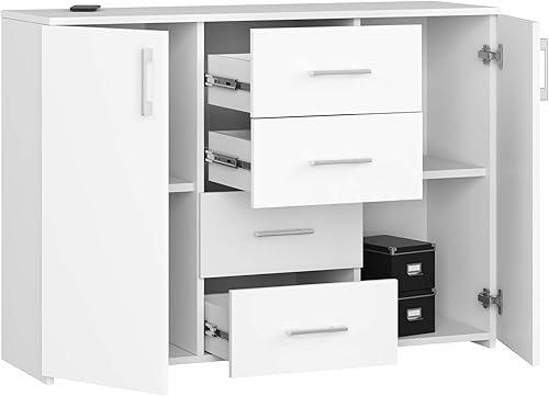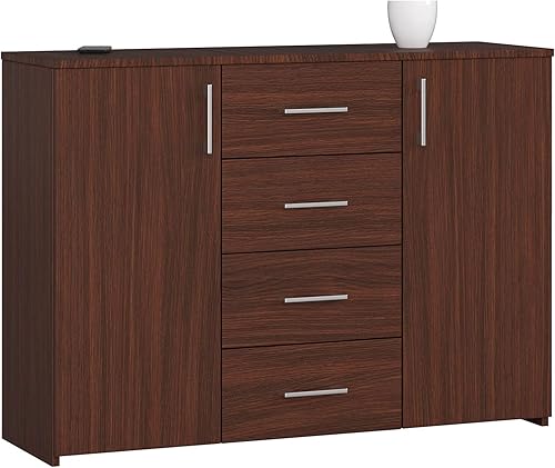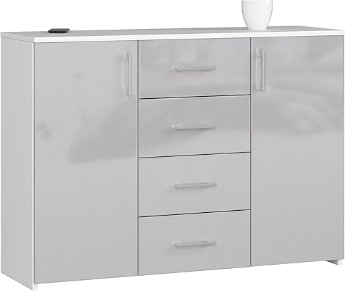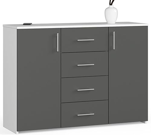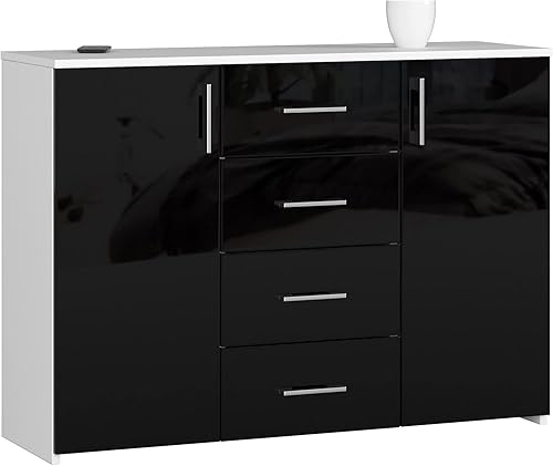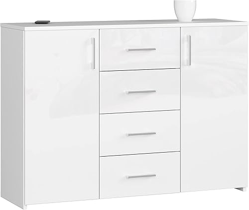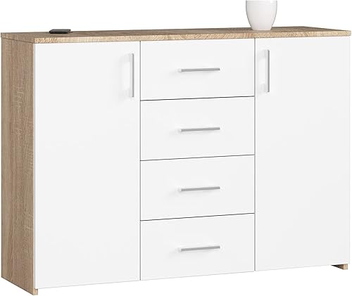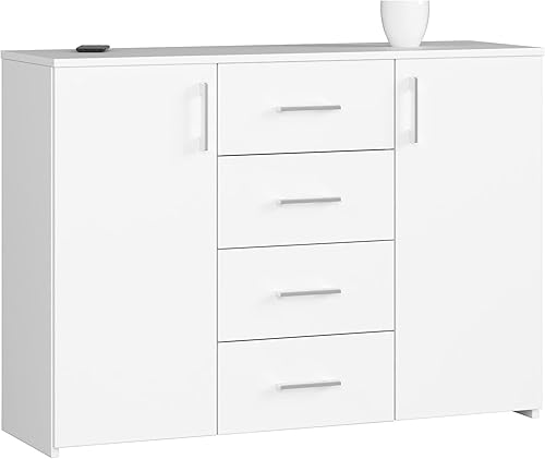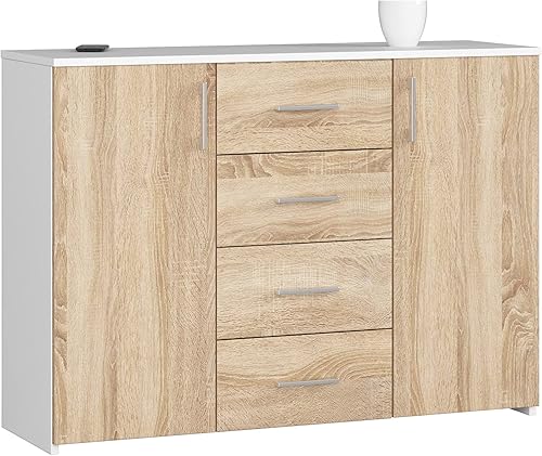 AKORD Commode 4 Tiroirs et 2 étagères avec Portes K45 | L110 x H80 x P35 cm | Moderne Bahut Meubles de Salon TV | Buffet Salle a Manger Chambre | Poids 43 kg
