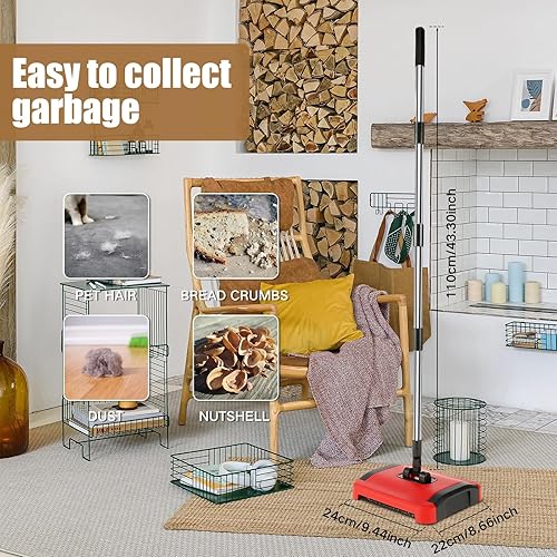 Toaboa Balayeuse pour tapis - 110 × 24 × 22 cm - Avec crin de cheval - Sans électricité - Gant efficace - Pour nettoyer les poils d'animaux et les peluches